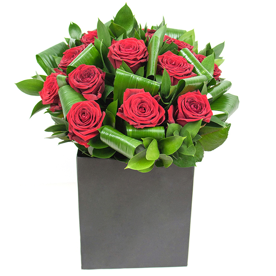 Indulge in the allure of elegance with our Timeless Red Rose Elegance bouquet. A refined collection of dazzling red roses, paired with lush aspidistra leaves and delicate ruscus, offers a stunning focal point that enhances any room with a luxurious and heartfelt impression.